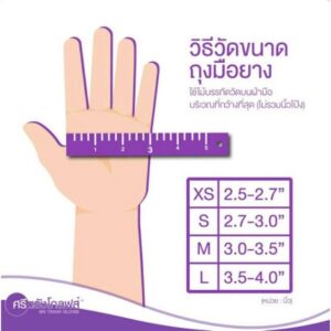 - นำถุงมือออกจากกล่อง ระวังของมีคมข่วน ซึ่งอาจทำให้ถุงมือรั่วได้