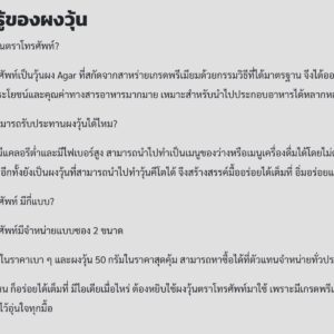 - วุ้นผง Agar ที่ทำจากสาหร่ายแดง ไม่มีส่วนผสมจากสัตว์ ไม่มีกลูเต็น