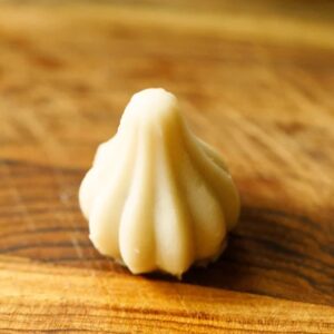- Keep the shaped modak covered with a napkin so that the rice dough does not dry out. Make all the modak this way.